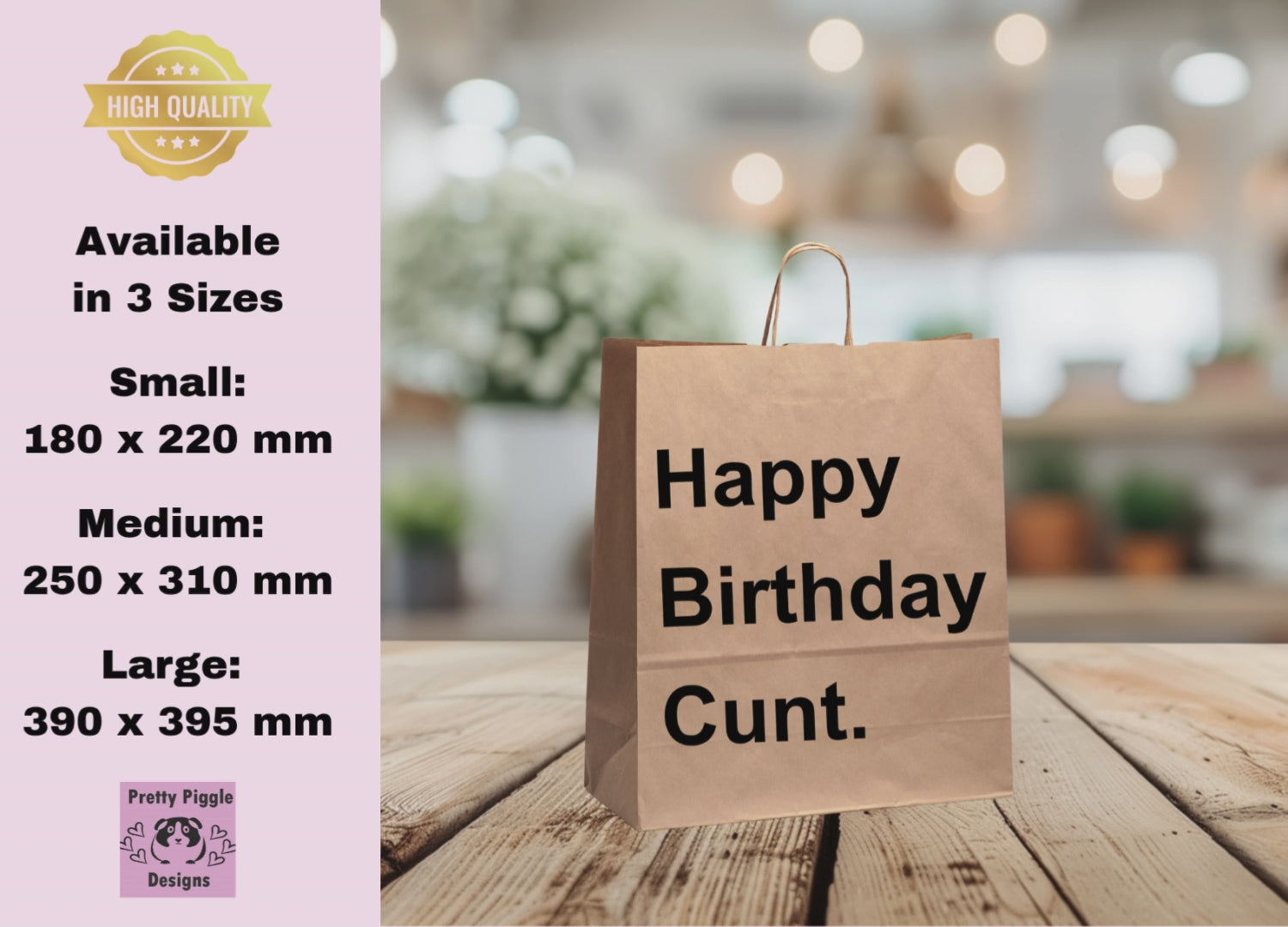 Make their birthday unforgettable (and a little bit rude) with this “Happy Birthday Cunt” gift bag. Perfect for friends, coworkers, or anyone who loves a cheeky laugh, it adds humour before the gift is even opened. Ideal for birthdays, parties, or Secret Santa-style celebrations where sass is appreciated.