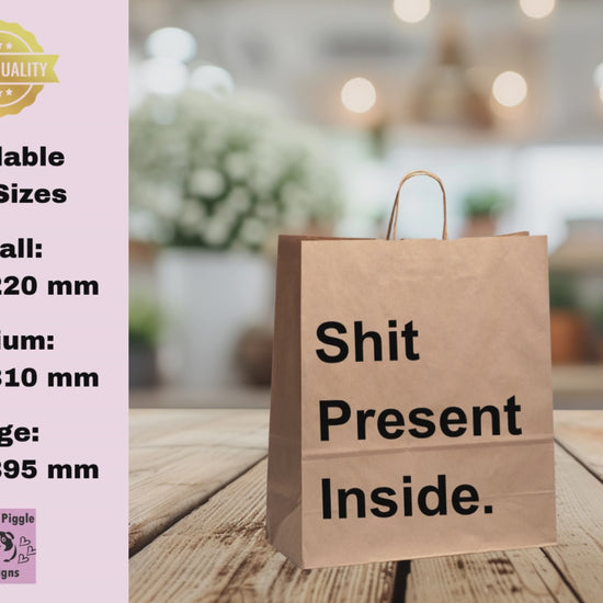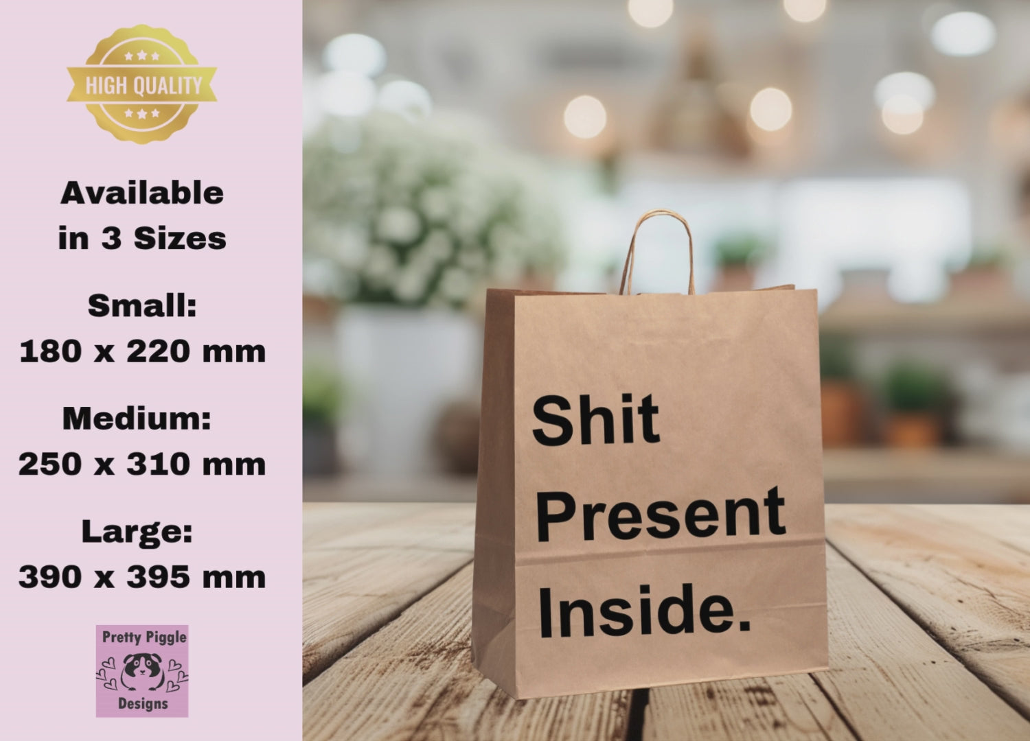 Skip the mystery and get straight to the point with this cheeky “Shit Present Inside” gift bag. Perfect for gag gifts, Secret Santa exchanges, birthdays, or Christmas surprises, this bag guarantees laughs before the gift is even opened.