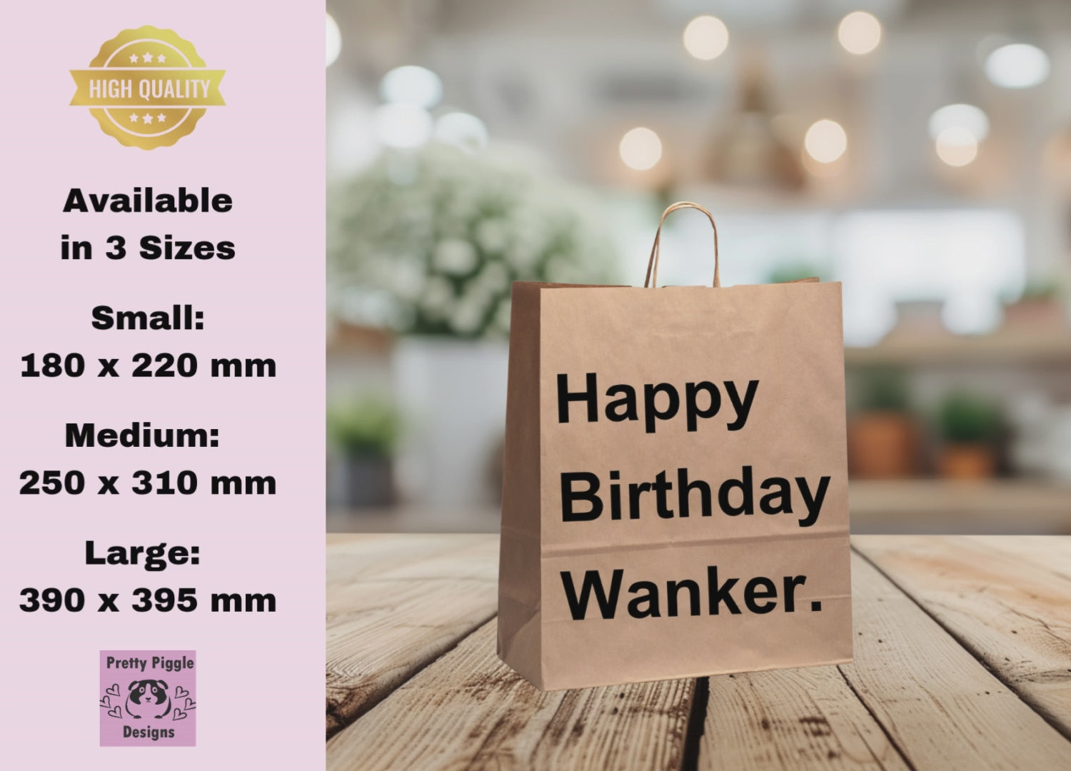 Make their birthday hilarious with this “Happy Birthday Wanker” gift bag. Perfect for friends, coworkers, or anyone who loves a cheeky laugh, it delivers humour before the gift is even opened. Ideal for birthdays, parties, or Secret Santa-style celebrations with a side of sass.