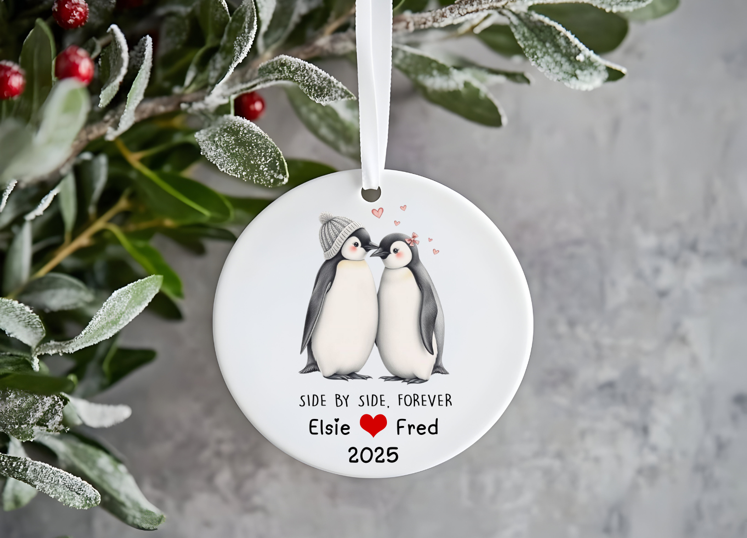 Personalised Penguin Bauble – Side by Side Forever Ceramic Ornament